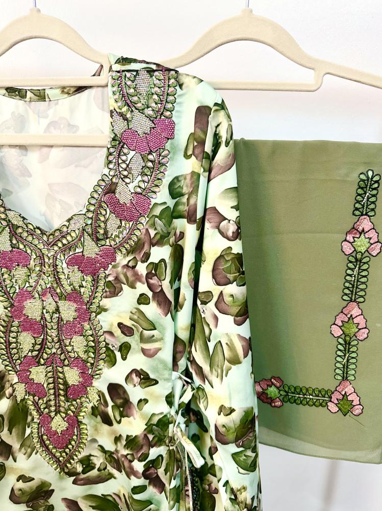 القماش : حرير إيطالي فاخر مطرز بخيوط و كريستال ذات جودة عالية