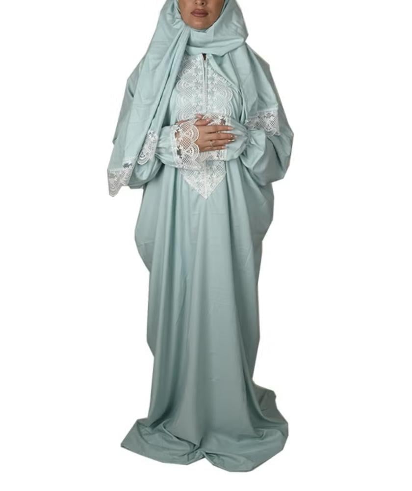* شرشف صلاة سحاب دانتيل فرنسي قطن بارد ، مايشمر ولا ينكمش مع الغسيل والإستخدام .