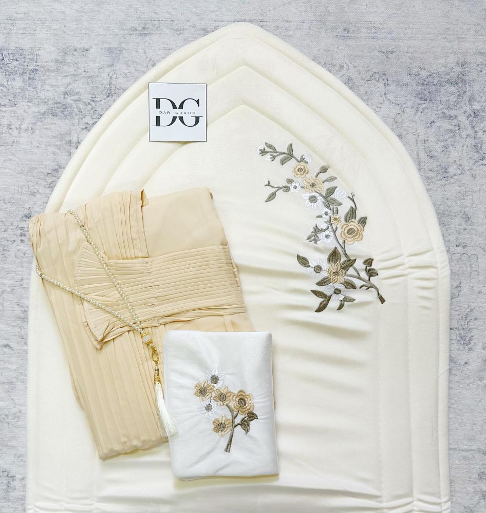 طقم صلاة بتلات المميّز 🌸 من دار غيث 📿 .
